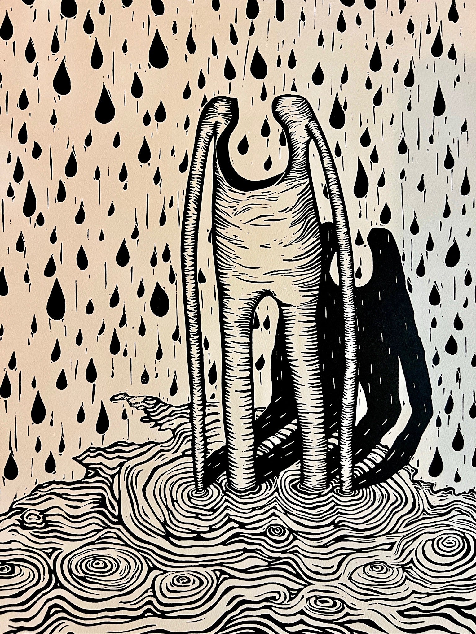 Druck: Linoldruck mit schwarzer Ölfarbe