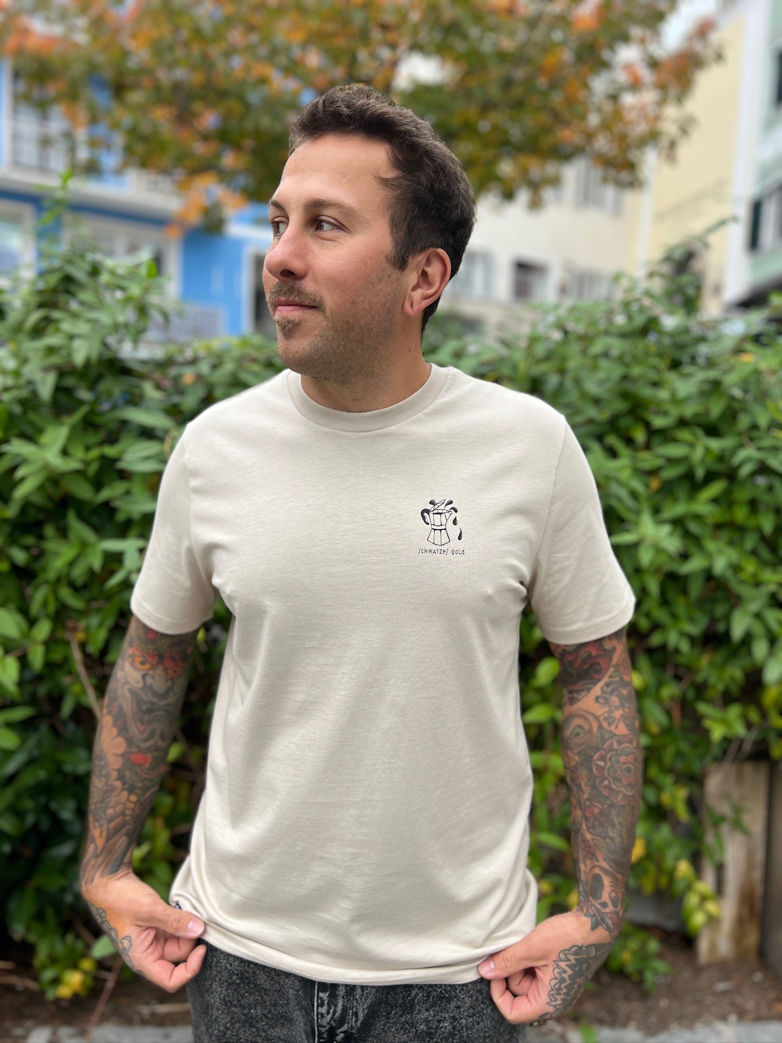 Lasst uns den Kaffee zelebrieren – ob aus dem Espressokocher, der Filterkanne oder der Siebträgermaschine. Dieses Shirt bringt deinen Lieblingsmoment des Tages auf reine Biobaumwolle. Perfekt für entspannte Morgenstunden oder den nächsten Café-Besuch.