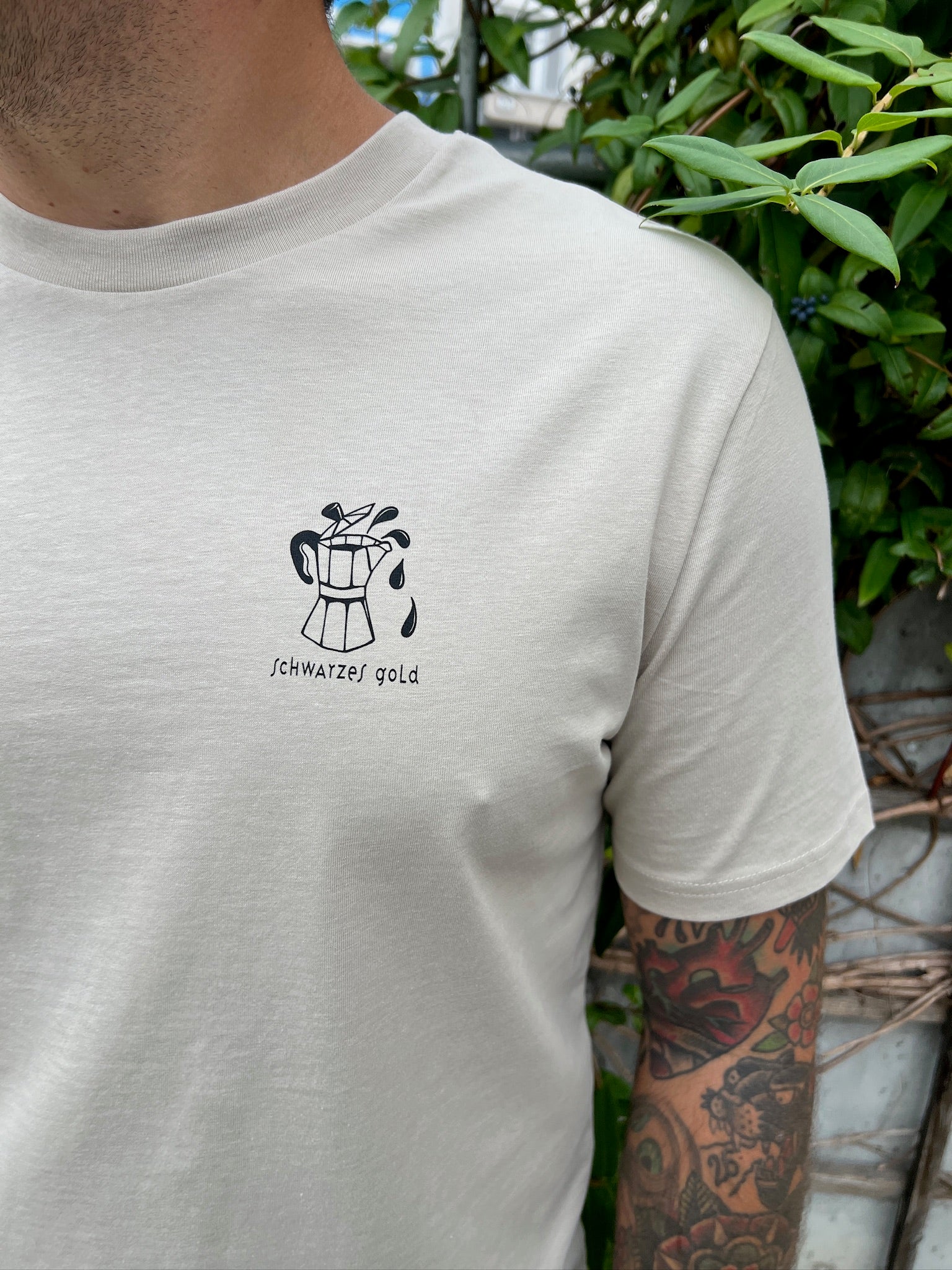 Unisex Coffee T-Shirt "Schwarzes Gold" in der Farbe sand